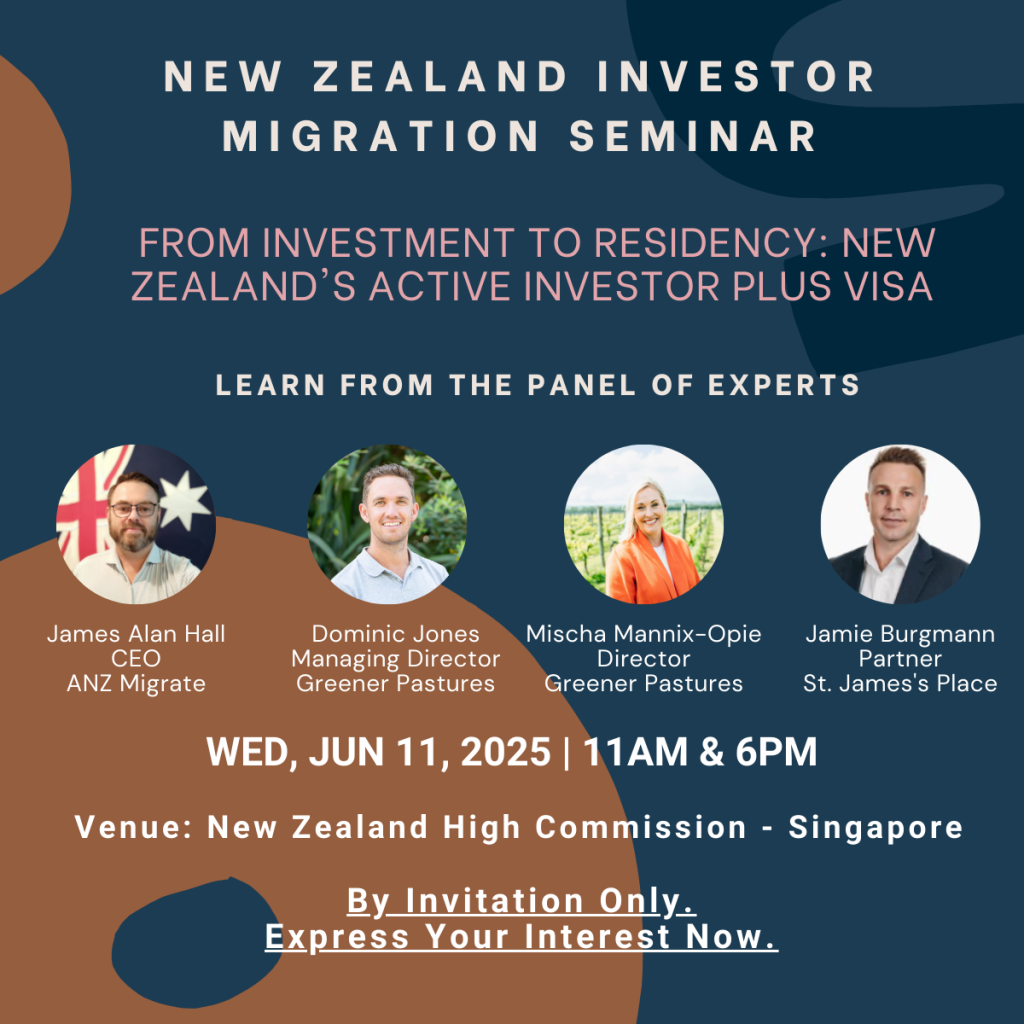 New Zealand’s investor migration pathway has changed. This seminar will explore what that means for high net worth individuals and global investors based in Singapore.